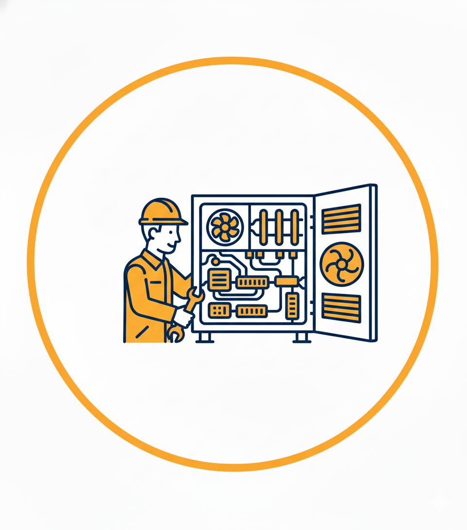 Realizamos instalaciones de climatización, aire acondicionado, ventilación mecánica, extracción forzada, enfriamiento evaporativo y calefacción industrial, aerotermia y geotermia, como instaladores y mantenedores de instalaciones térmicas autorizados por la Dirección General de Industria.